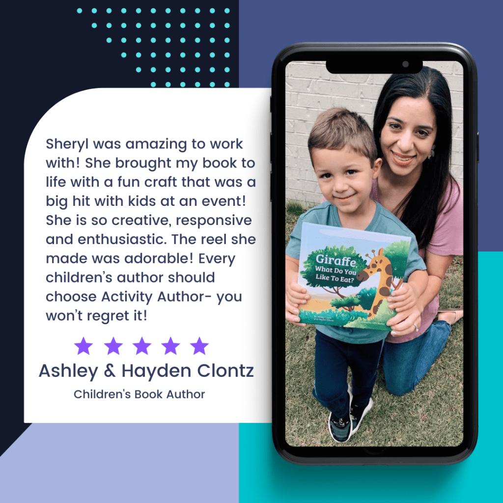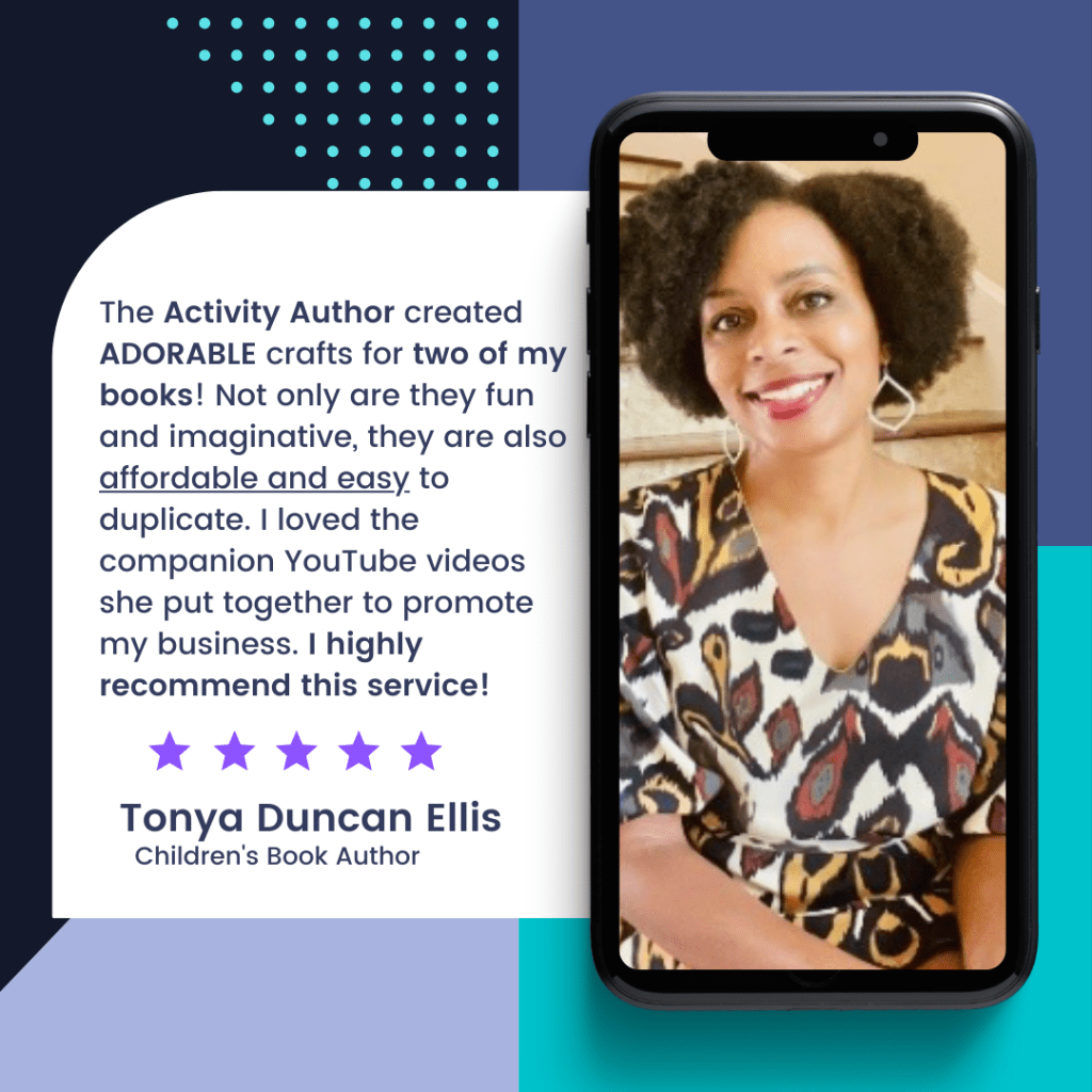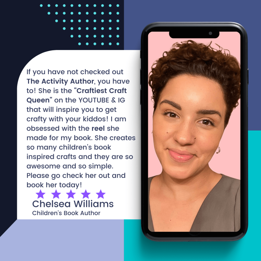Success stories from children’s book authors that booked The Activity Author to create crafts from their books .