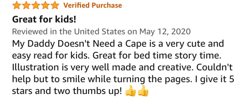 Click video to see what readers are saying about, “My Daddy Doesn’t Need a Cape”!